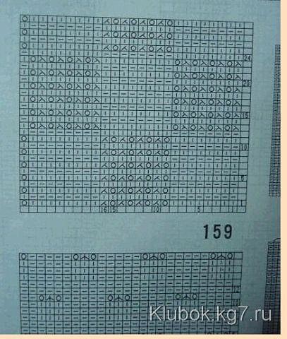 На схеме указаны только лицевые ряды. Изнаночные ряды провязывать по рисунку.