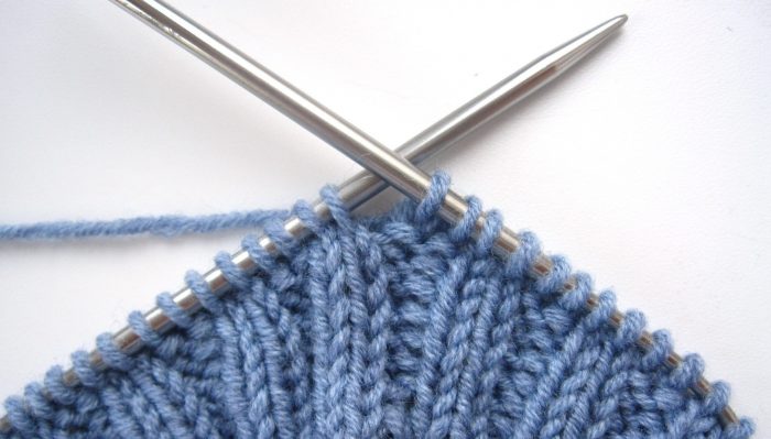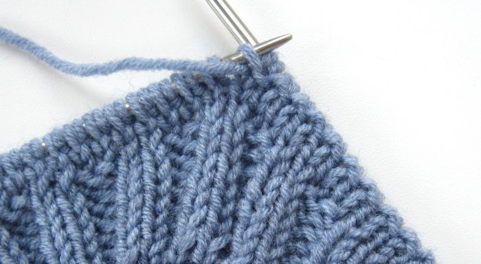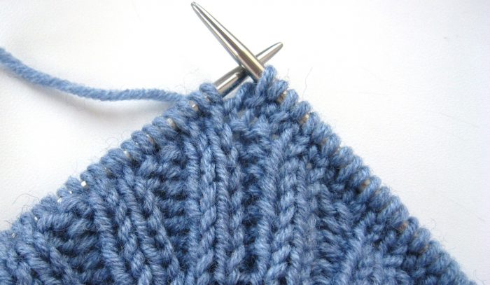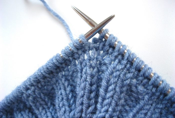 Ряд 7: вяжем все петли по две вместе с наклоном влево.